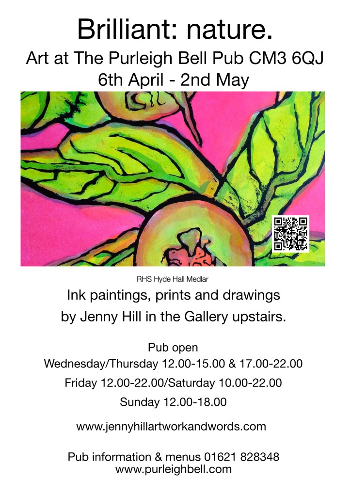 These artworks of ink paintings and linocut prints have been developed from oil pastel and felt tip pen sketches.  Fungi and the charcoal Snow Gardens, (too cold, too fleeting or too low), were recorded with a camera, then sketched.